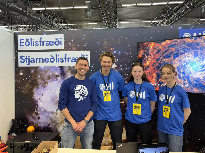 Members of the CMBeam team participated in Vísindavaka 2025, an annual science outreach event which is meant to inspire young people. This time, our booth was equipped with a 2.4-m diameter gravity demonstrator, some videos (in Icelandic) on various astrophysics activities at the University of Iceland, a Hoberman sphere, a few perpetual motion machines and Stirling engines, diffraction gratings, lasers, and calcite crystals.